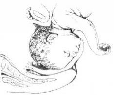 В конце беременности дно матки вместе с находящимся в нем тазовым концом плода по мере развития беременности начинает испытывать возрастающее давление со стороны диафрагмы и брюшной стенки. Последняя, благодаря свойственной ей упругости, малой податливости, особенно хорошо выраженным у первородящих женщин, препятствует отклонению дна матки вперед. В связи с этим давление со стороны диафрагмы, приложенное к тазовому концу плода, распространяется по его позвоночнику и сообщается головке. Головка при этом сгибается и в слегка согнутом состоянии устанавливается стреловидным швом в одном из косых размеров.